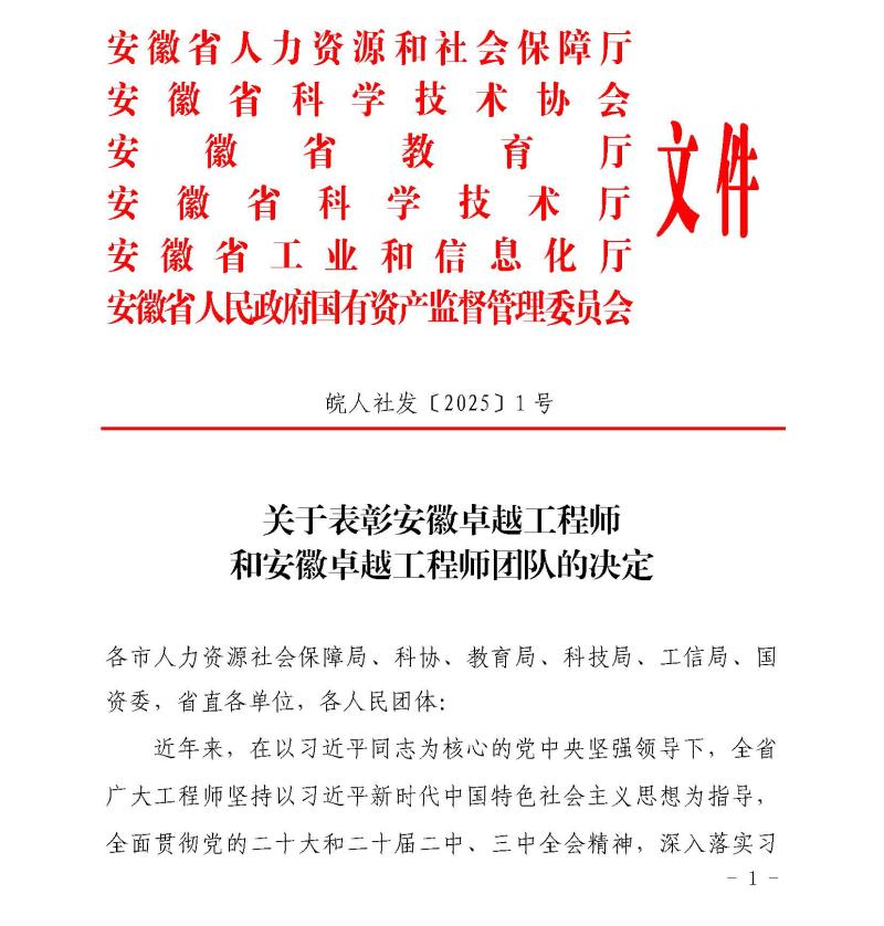 近日,安徽省人力資源社會保障廳、省科學技術協會、省教育廳、省科技廳、省工業和信息化廳、省人民政府國有資產監督管理委員會聯合開展“安徽卓越工程師”“安徽卓越工程師團隊”評選表彰活動。經層層遴選,裝備集團所屬合肥中亞建材裝備有限責任公司王國慶憑借突出的工程技術成就,榮獲“安徽卓越工程師”榮譽稱號。